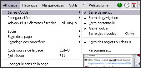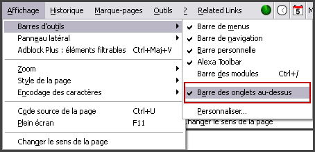 Affichage→Barres d’outils→Barre des onglets au-dessus